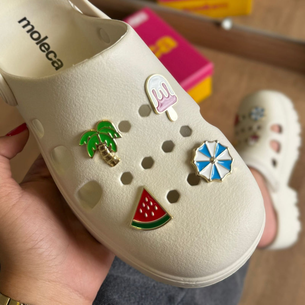Babuche Moleca com Charms Coqueiro oferece conforto excepcional para o dia a dia. Confeccionado em material de qualidade, este modelo combina praticidade e estilo com seu design versátil. Os charms removíveis em formato de coqueiro permitem personalização, tornando cada uso único. Ideal para quem busca um calçado leve, respirável e fácil de limpar. Perfeito para ambientes internos, praia ou momentos de descontração. Uma escolha inteligente para conforto sem abrir mão da estética.
