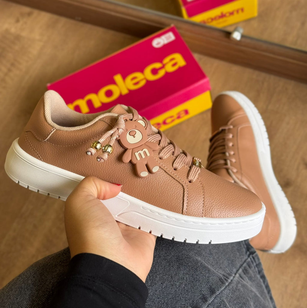 O Tênis Moleca é a escolha perfeita para quem busca unir conforto, estilo e um toque delicado no dia a dia. Com design casual e moderno, ele se destaca pelo charmoso chaveiro de ursinho, que adiciona personalidade e feminilidade ao visual.